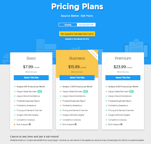 Algopix offers many features in supporting you compete more effectively. It is widely used to assist the sellers to understand the marketplace in confidence of expanding their business while reducing the risk of backfiring