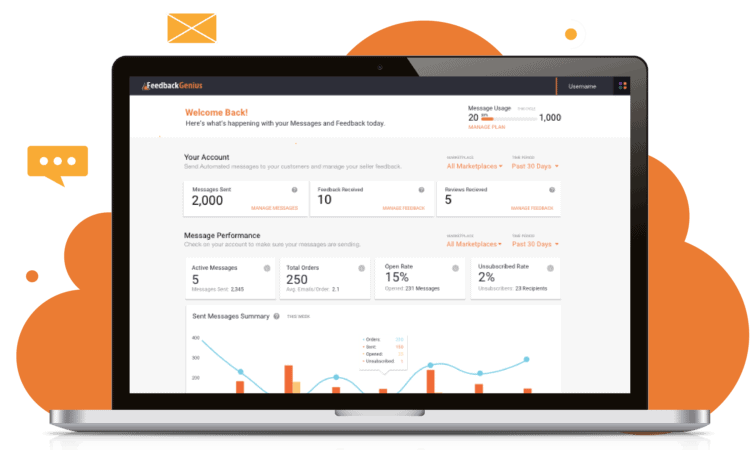 Feedback Genius does not only automate buyer-seller messaging for you but also provide message analytics that you can use to improve iterate and optimize your emails. You can view open, click through, feedback and unsubscribe rates for each message you send.