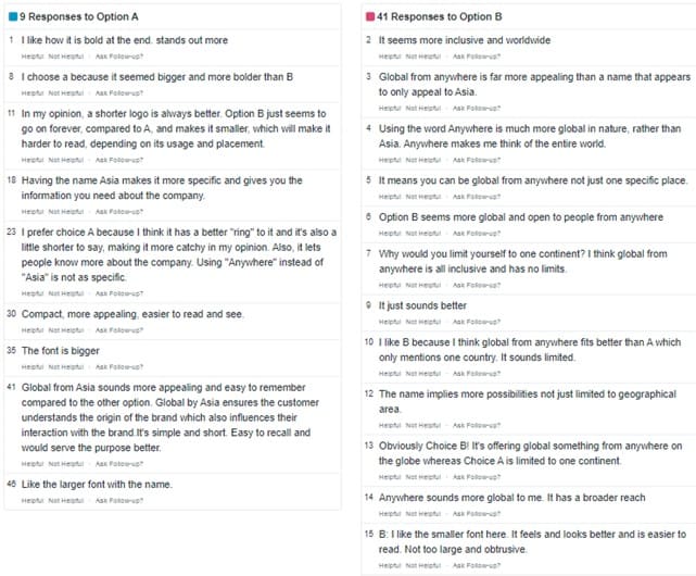 Global From Anywhere was the clear winner – 41 vs. 9. We cannot help but gush over the fact that we got comprehensive feedback on our idea in just a matter of minutes.10 minutes into the gathering of data, PickFu was already able to get the responses from 21 respondents.