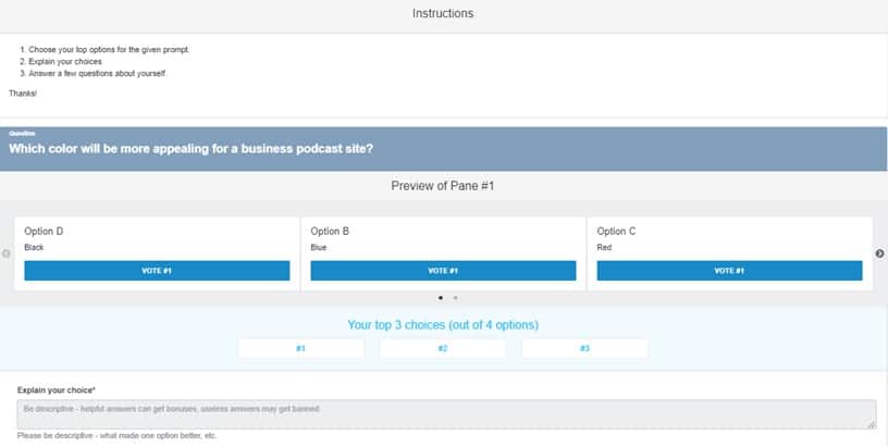 This type of poll will work for you if you want to rank your ideas of at least three. What distinguishes the Ranked type of PickFu poll from the Head-to-head poll is the manner of how each poll was conducted.