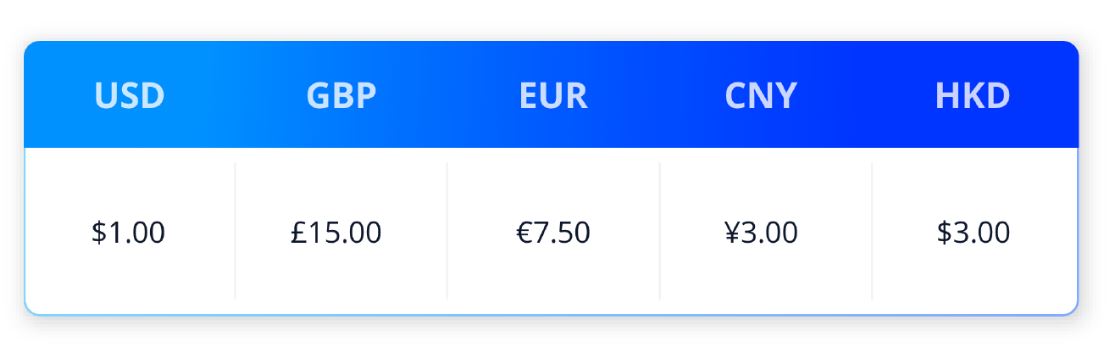 The above table shows the minimum fee in accordance to the payout currency. Those currencies that are supported are not included with the minimum fee.