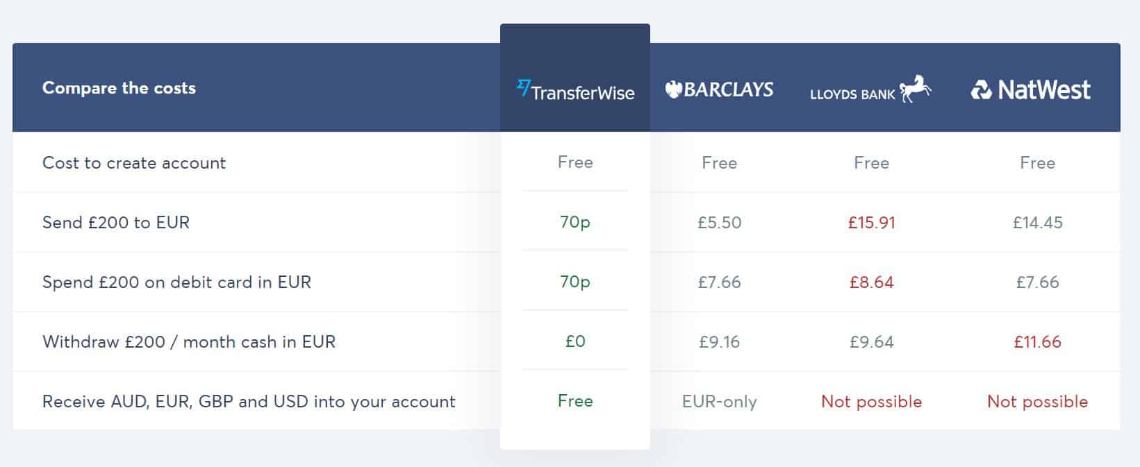 - TransferWise is up to 8x cheaper compared to banks and very transparent with the fees associated in all transactions.
