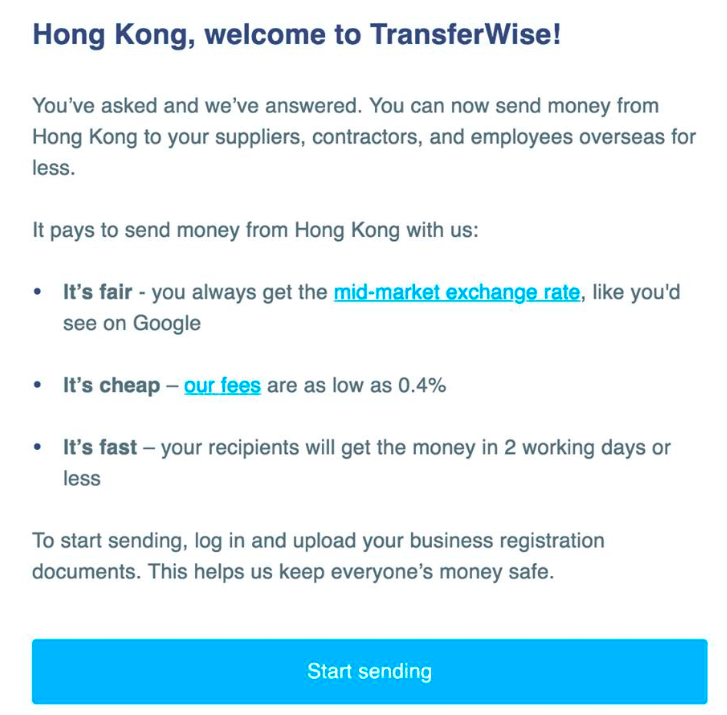 Transferwise uses smart technology that links local bank accounts in countries all over the world. In Transferwise, money never actually crosses any borders. For example, if you wish to send USD to China, you will simply need to log on and pay in your USD to Transferwise’s Chinese bank account. Then, Transferwise’s Chinese bank account sends CNY to the recipient. Transferwise manages to make international money transfer using its advance technology infrastructure.