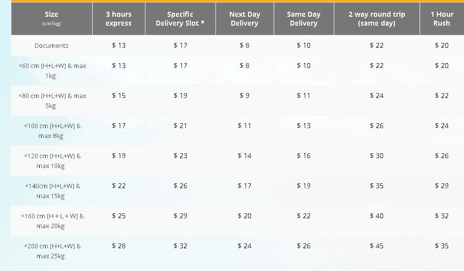 - Same day delivery, next day delivery or Express Delivery of 3 hours, 1-hour rush and two-way roundtrip